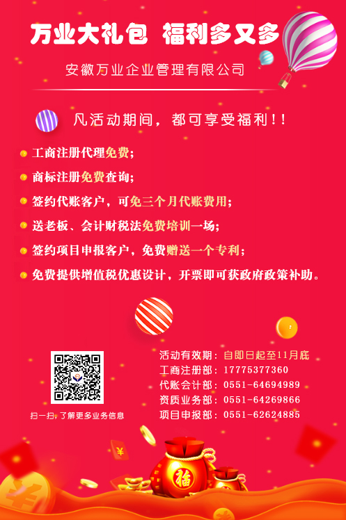 安徽萬業企業管理有限公司成立于2006年,從事企業服務十余年。公司主營業務:資質新報、升級、增項、公司注冊、財稅代賬、財務咨詢、項目申報等業務。且已經成功辦理上萬家公司注冊、資質申辦業務及財稅代賬客戶上千家。
