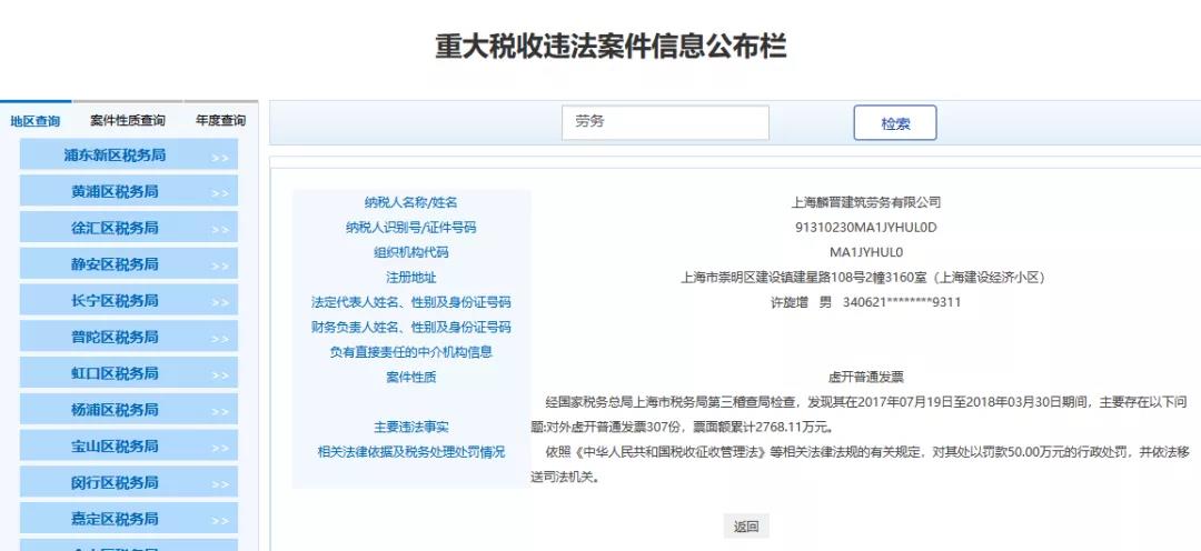 最近魔都上海傳來(lái)大消息,多家勞務(wù)公司和人力公司被查,清一色的罰款+移送司法機(jī)關(guān),不難看出勞務(wù)公司一直是稽查重點(diǎn),也是虛開(kāi)的重災(zāi)區(qū),一查一個(gè)準(zhǔn)!