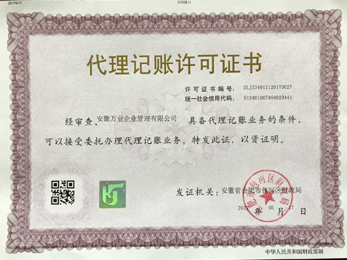 代理記賬許可證
