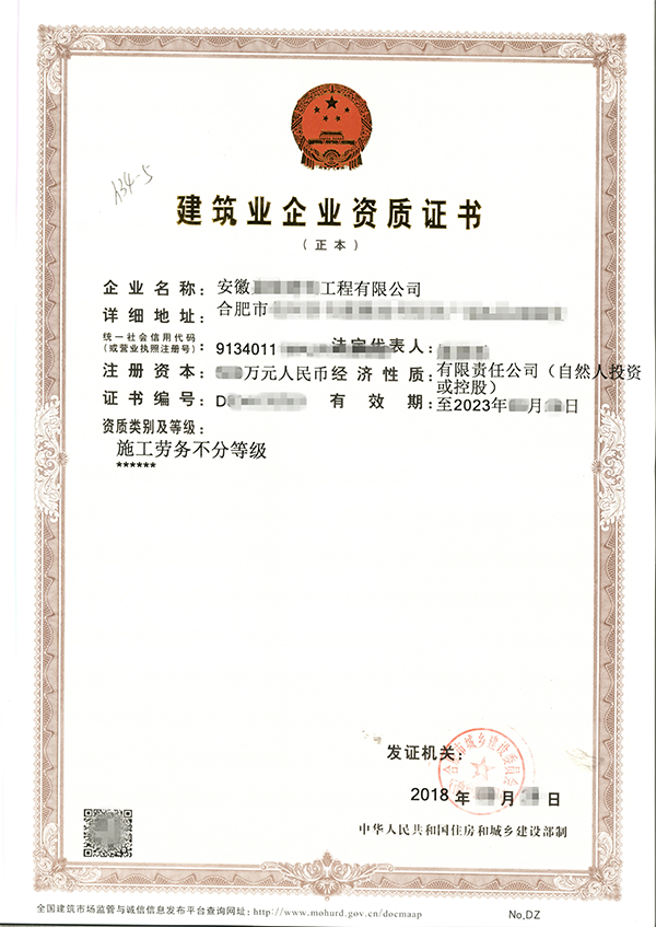 名稱:建筑企業資質證書