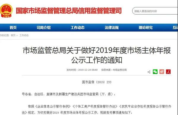市場監管總局關于做好2019年度市場主體年報公示工作的通知