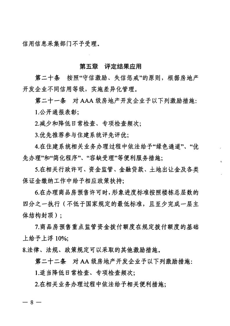 為繼續推進行業信用體系建設,房地產開發相關部門宜進一步深化信用管理,積極探索開發企業信用評價結果的使用,引導開發企業積極創優,提高房地產開發企業誠信經營意識,鼓勵開發企業走責任地產、品質地產之路,為社會提供更好的產品和服務。